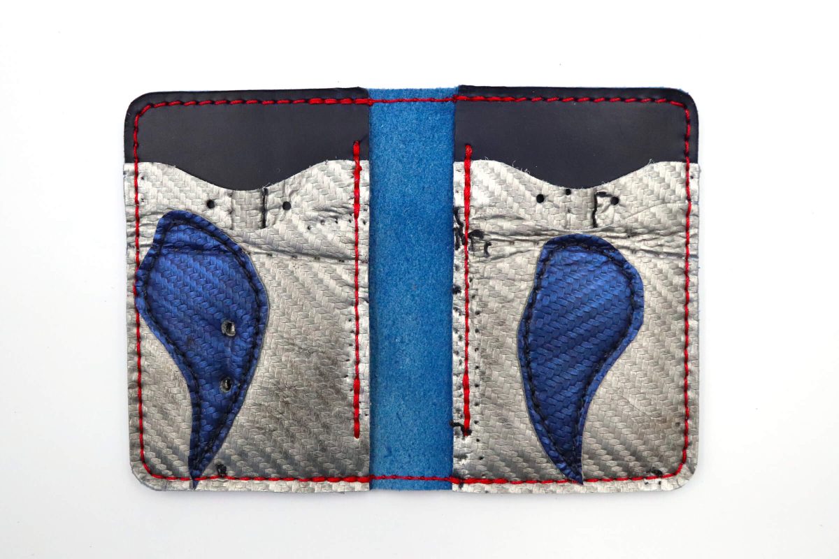 The 6 Slot Wallet is handcrafted from Horween Leather and fused with vintage goalie gear leather. It features six card slots, two of which are hidden