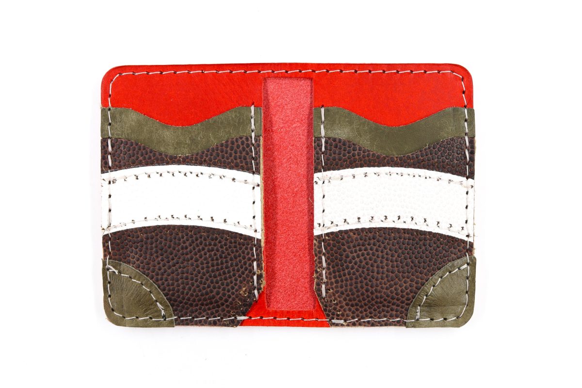 Handcrafted from full-grain, oil-tanned leather and accented with authentic football leather on the lower left and right card pockets, The 6 Slot Bifo