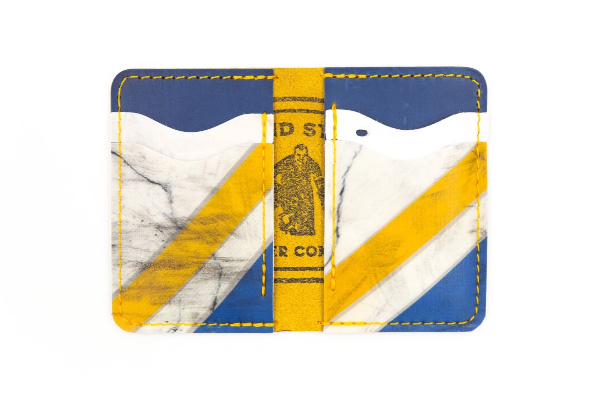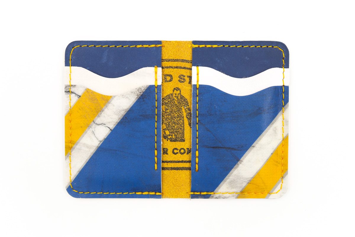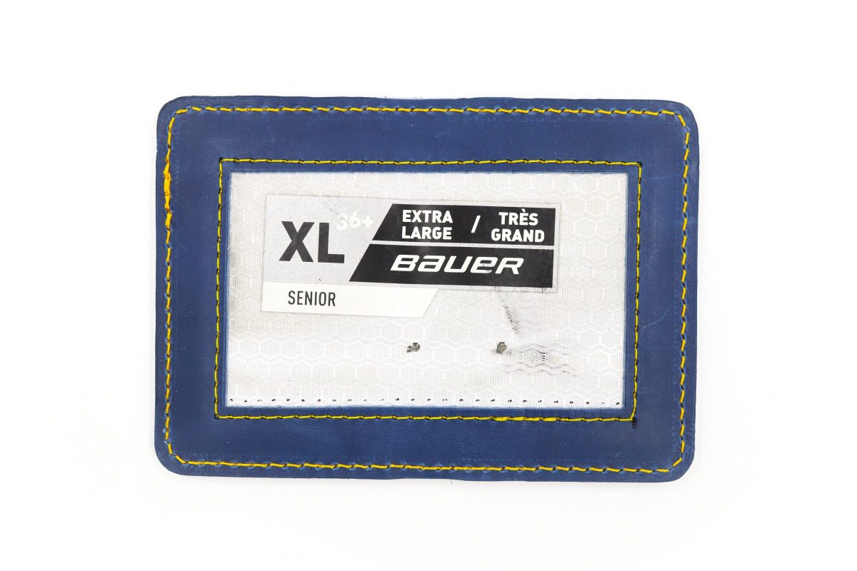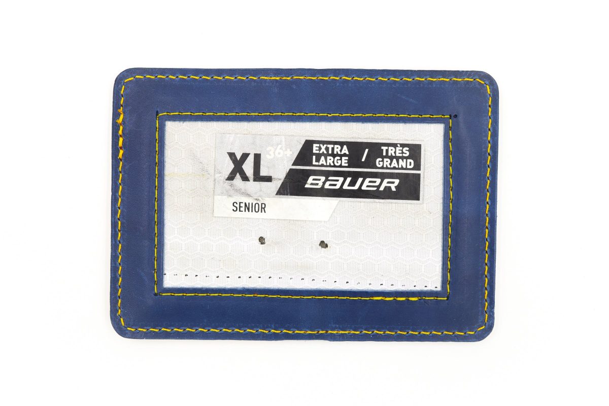 The 6 Slot Wallet is handcrafted from full-grain, oil-tanned leather and fused with vintage goalie gear leather. It features six card slots, two of wh